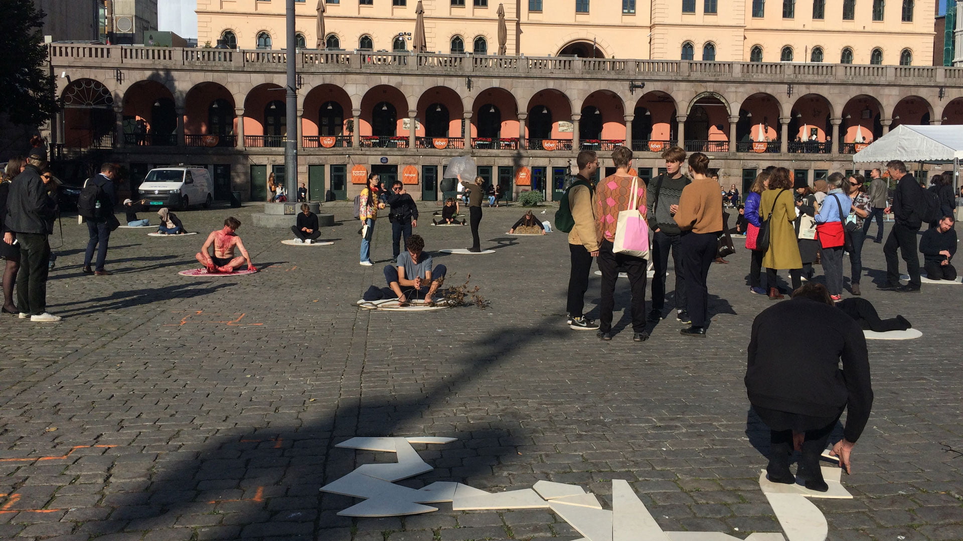 Foto: Kurt Johannessens arthappening udført i samarbejde med landskabsarkitektstuderende fra hele verden på torvet udenfor konferencestedet i Oslo. Fotograf: Anna Bové.
