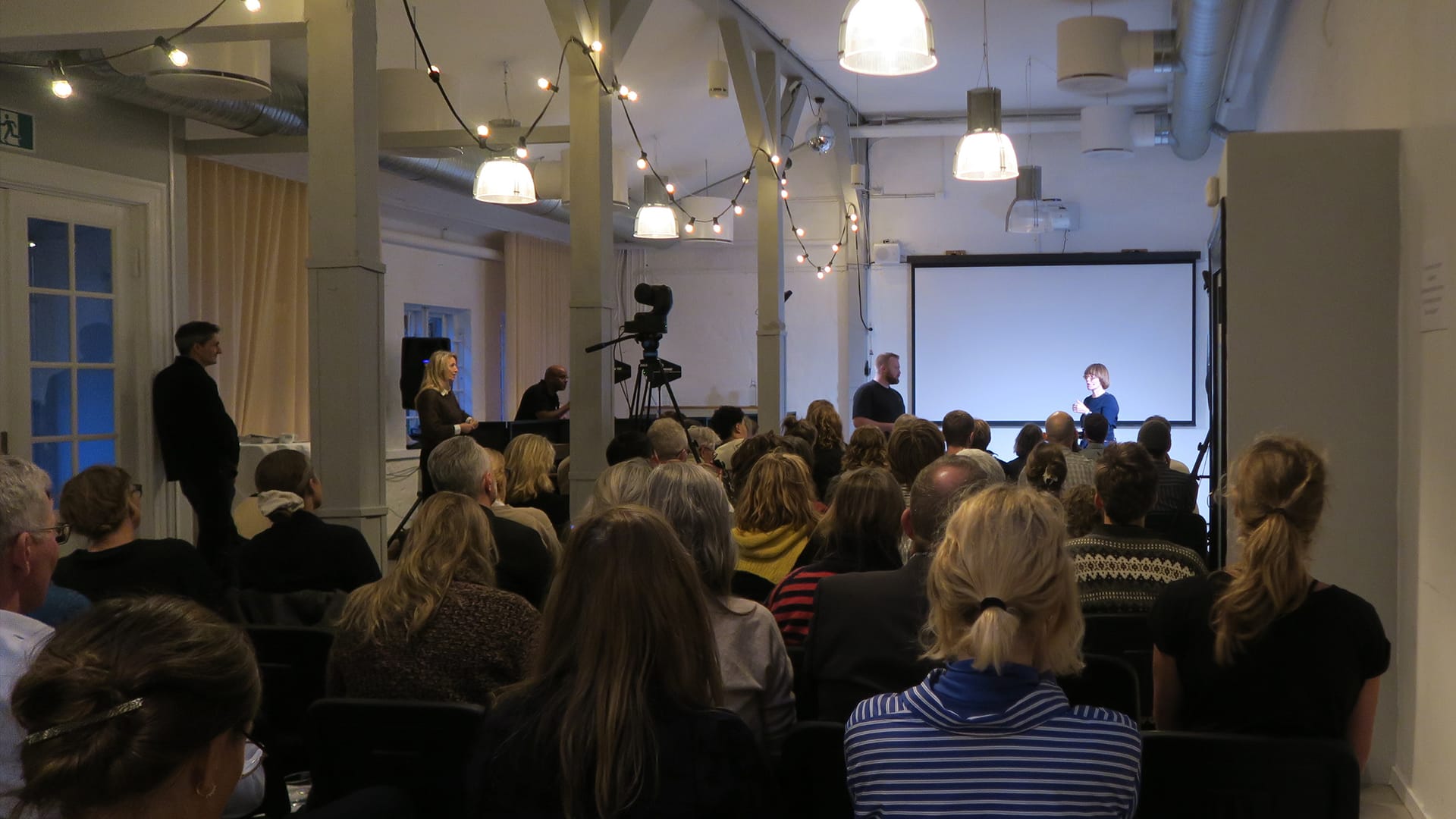 Et opslugt publikum lytter til aftenens oplæg / Foto: Ida Svensson Levin