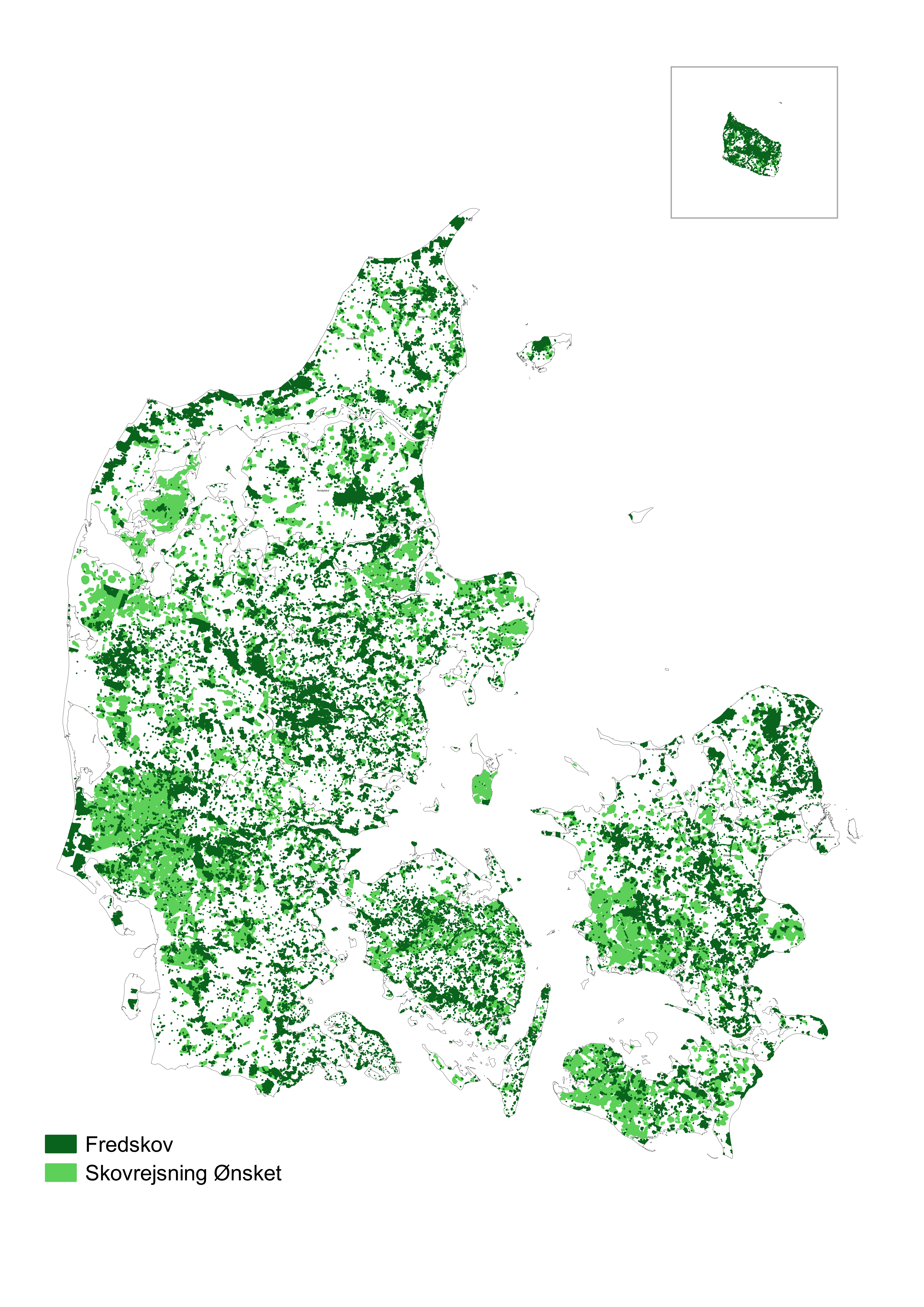 Danske Landskabsarkitekter vil gerne tage hul på denne debat, ved at vise Danmarkskortet, som det ser ud med alle kommunernes planlagte skovrejsningsarealer.