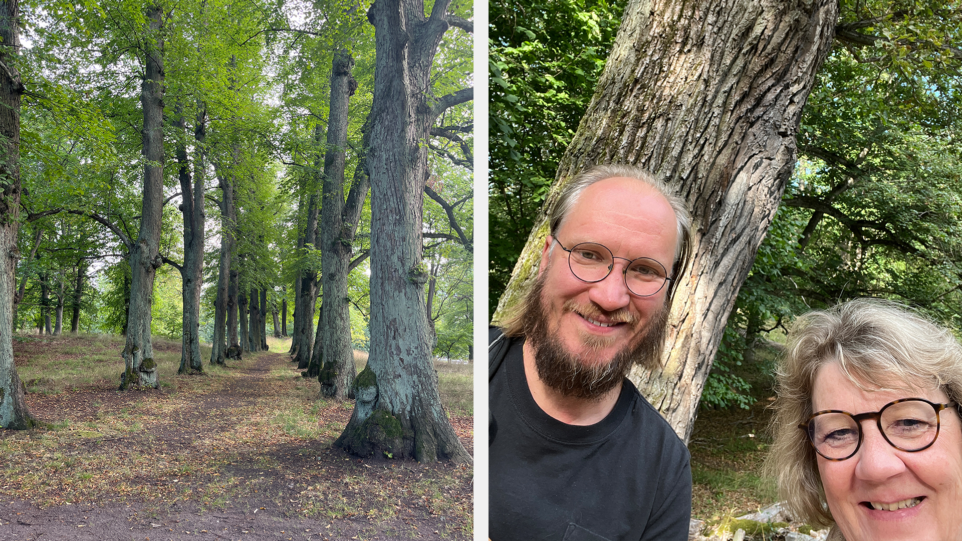 Tv: Kik til gamle alléer i Djurgården. Th: Martin Hedevang Andersen og Lillan Thomsen.