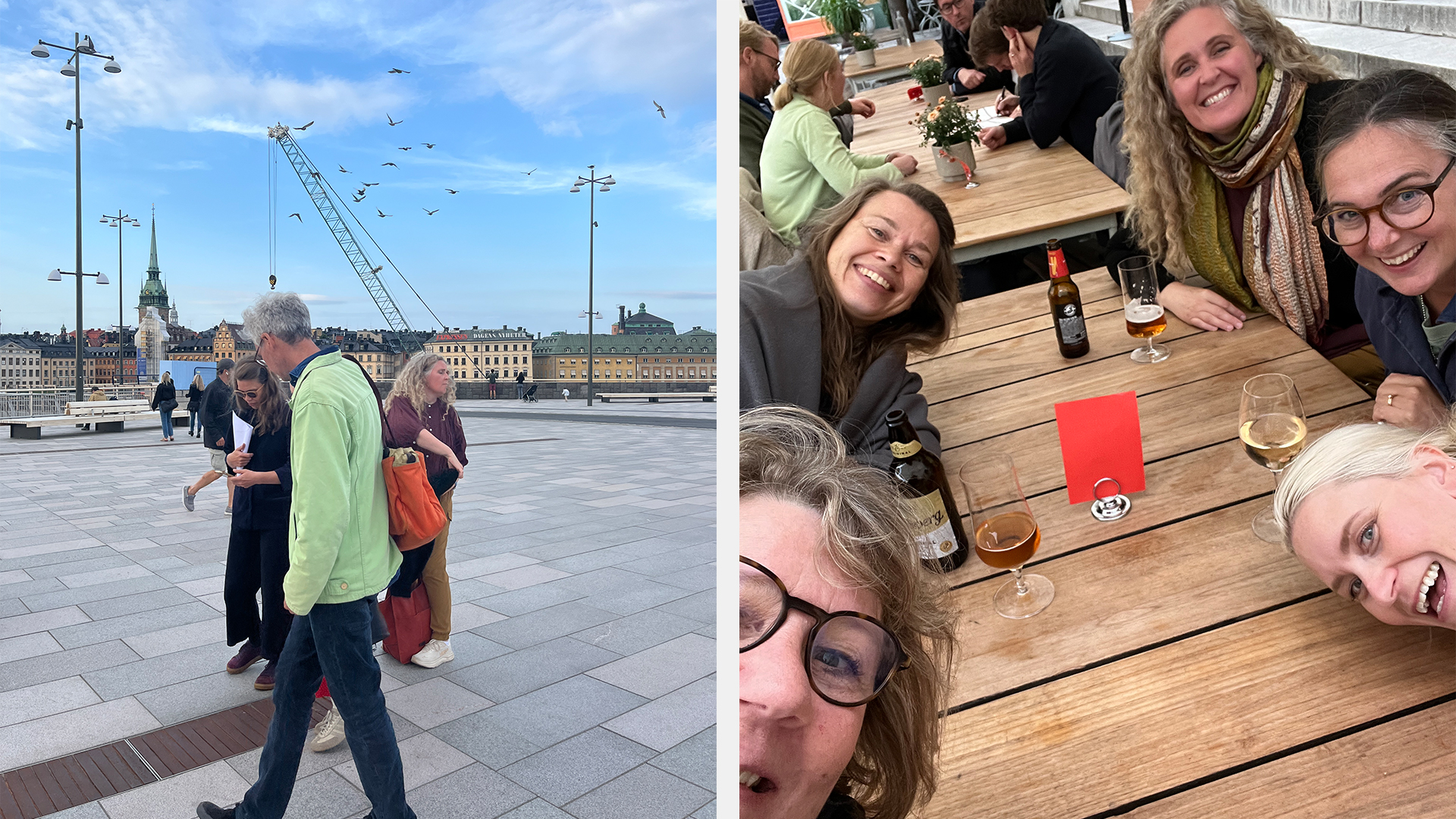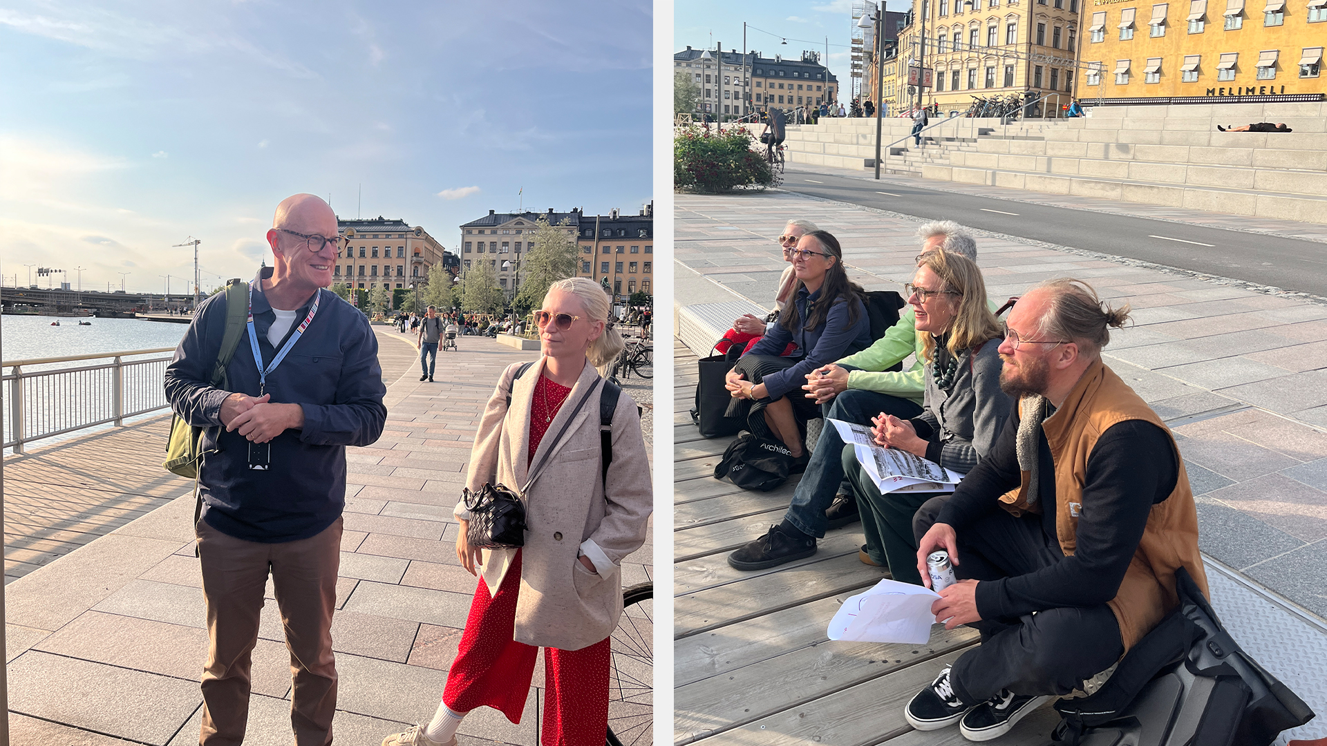 Tv: Rundvisning på Slussen i Stockholm. Th: Pause & tid til selfie. Foto Lillan Thomsen