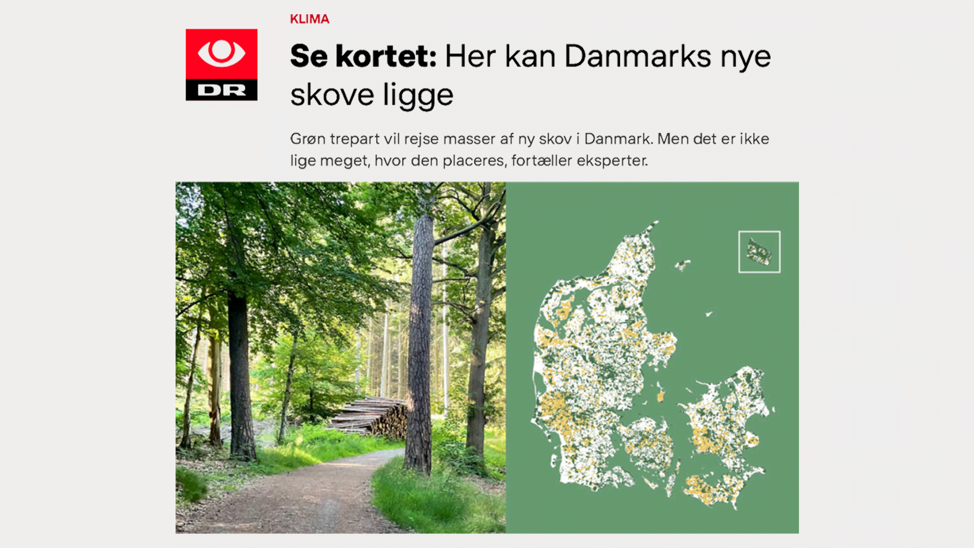 Du kan høre indslaget i P1 Morgen, som blev sendt den 26. juni 2024, samt læse artiklen på DR’s hjemmeside her: Se kortet: Her skal Danmarks nye skove ligge.