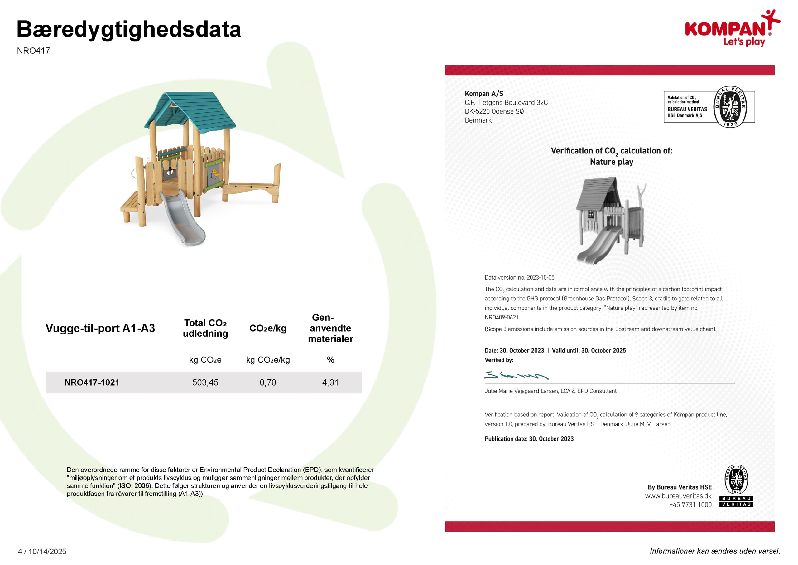 Når du har brug for dokumentation, der går i dybden, er det ikke nok med generelle udsagn. På eksemplet med produktet ”Den lille hønes hus (NRO417)” kan du fx finde: