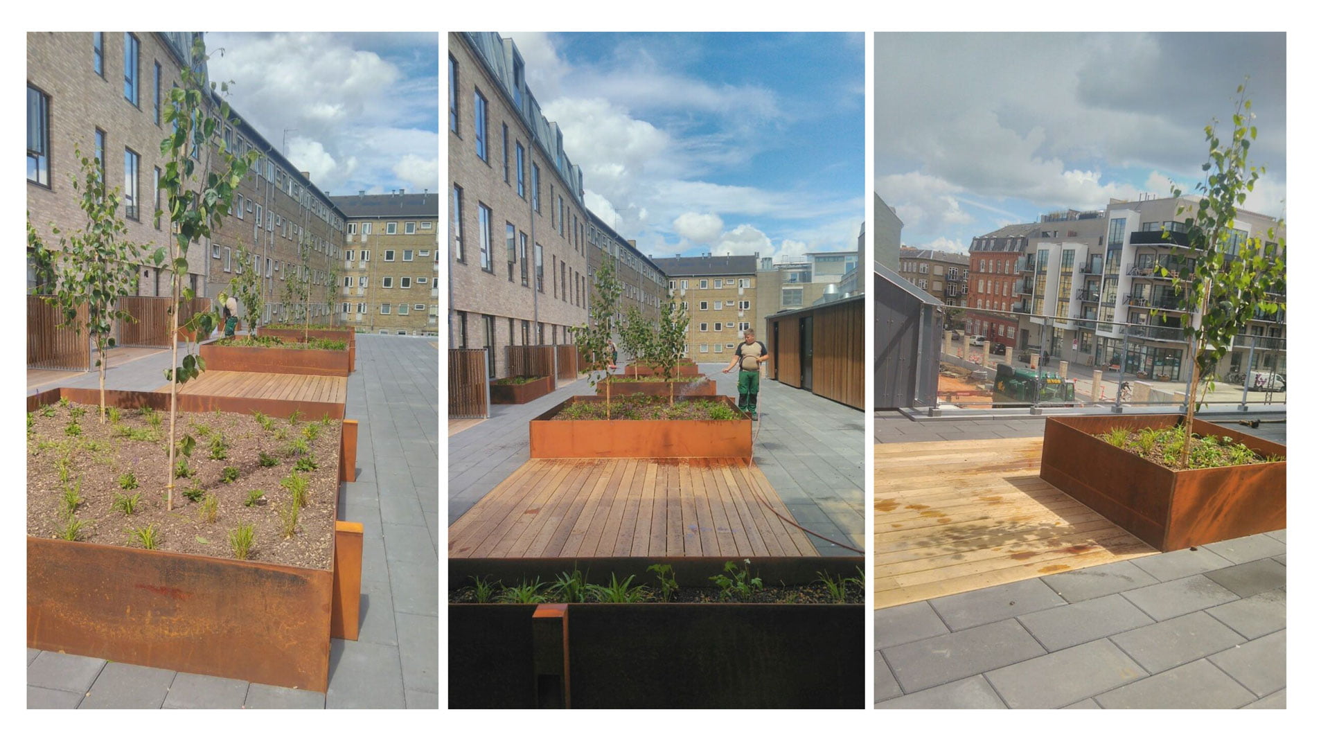 Billederne her viser et taghave-projekt på Nygårdsvej, og et levende-væg projekt på Ryesgade.