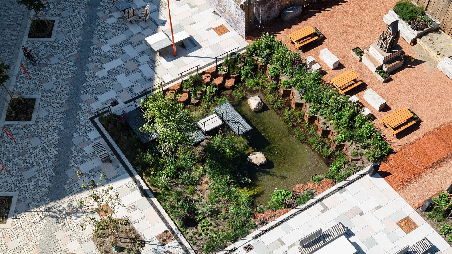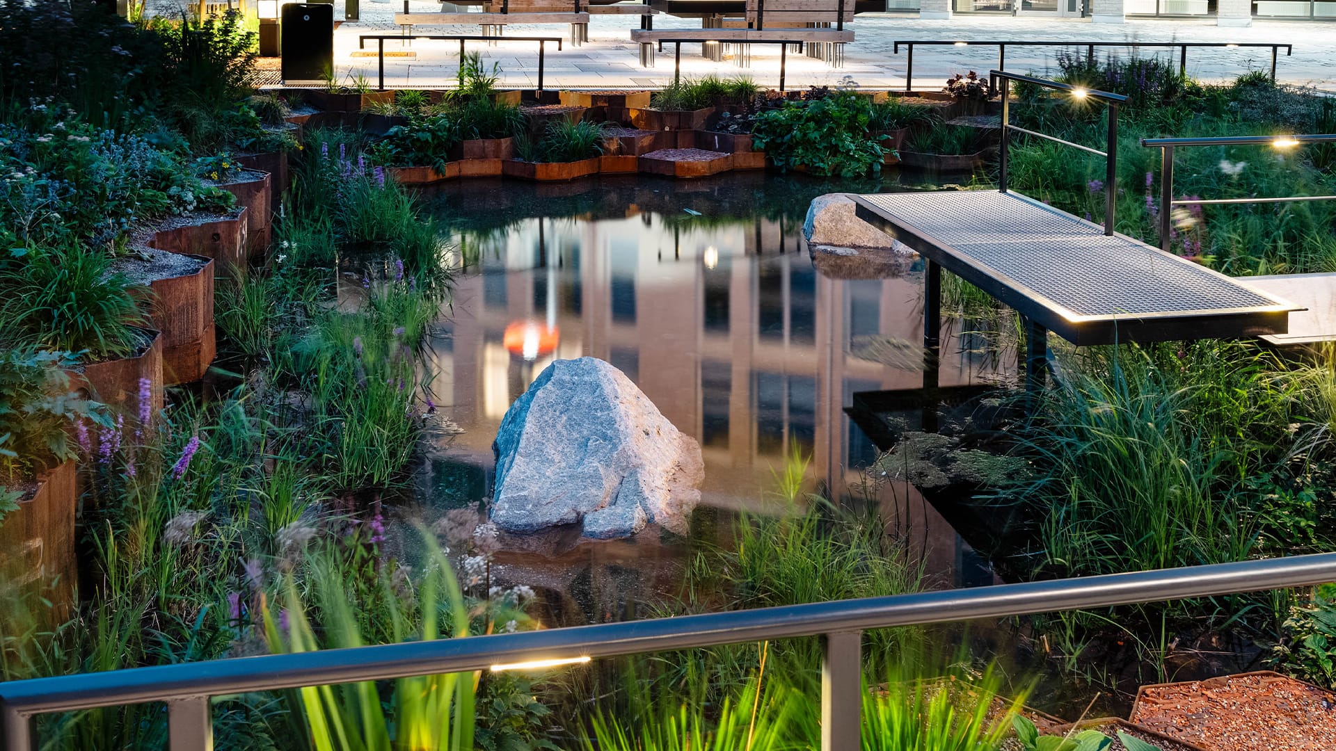 “Prisvinderen er et vigtigt banebrydende arbejde i, hvordan landskabsarkitekterne har arbejdet med restbrug, genbrug, genbrug og upcycling i al materialeanvendelse i projektet. Indsamling af materialer fra byggepladsen, overskydende opbevarings- eller nedrivningssteder kræver meget arbejde, stor fleksibilitet til tilpasning og godt samarbejde mellem klient, designer og eksekutor. Det kræver stor indsigt at differentiere og tilpasse materialebehov til forskellige anvendelser. Det betyder også, at alt i projektet fremstår skræddersyet, speciallavet med ukendte dimensioner og sammenstillinger, der skaber en helhed præget af kreativitet, glæden ved at forme og spændende detaljer. Ofte løsninger, vi aldrig har set før.”