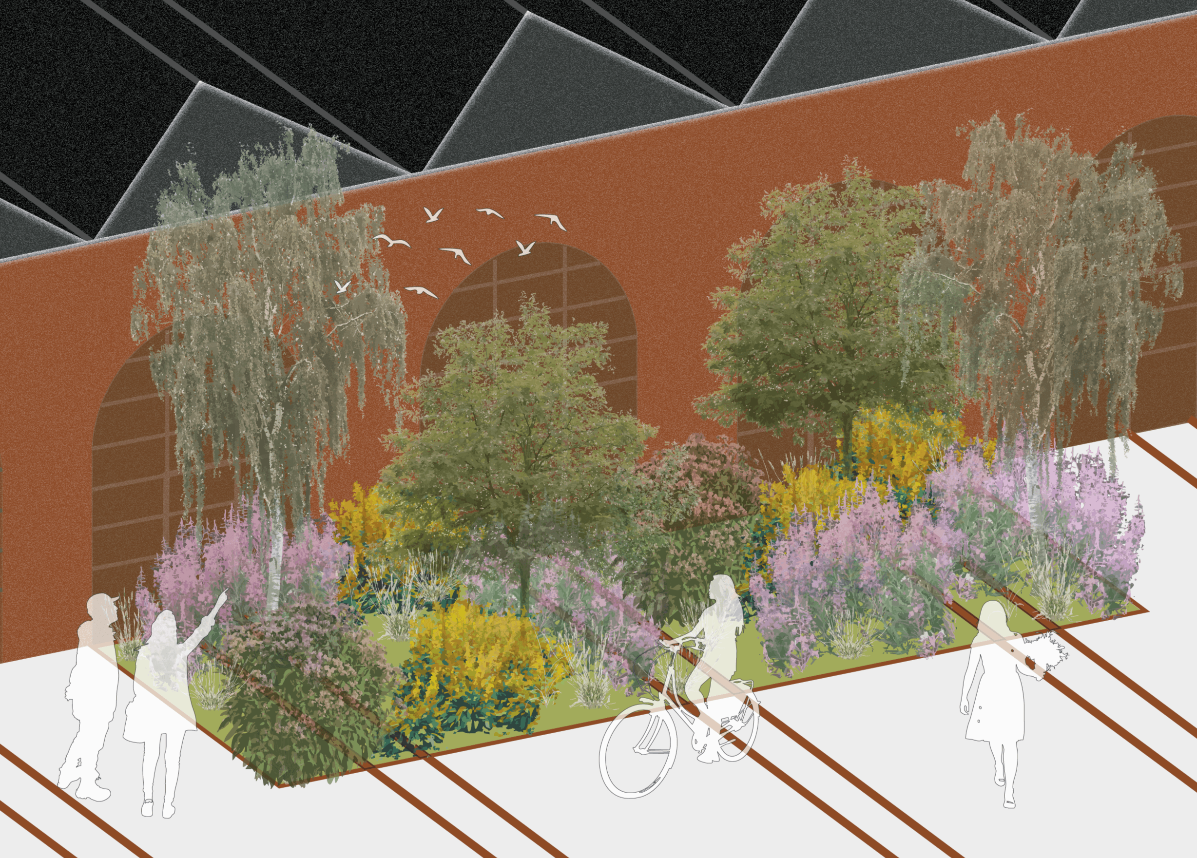 Gennem en synergi af arv, forstyrrelse og forbindelse foreslår designet en modstandsdygtig, adaptiv transformation af Jernbanebyen. Det placerer stedet som et testområde for, hvordan byudvikling på postindustriel grund kan omfavne biodiversitet, kulturarv og fællesskab for ar forme en ny slags levende kulturarv i det antropocæne.